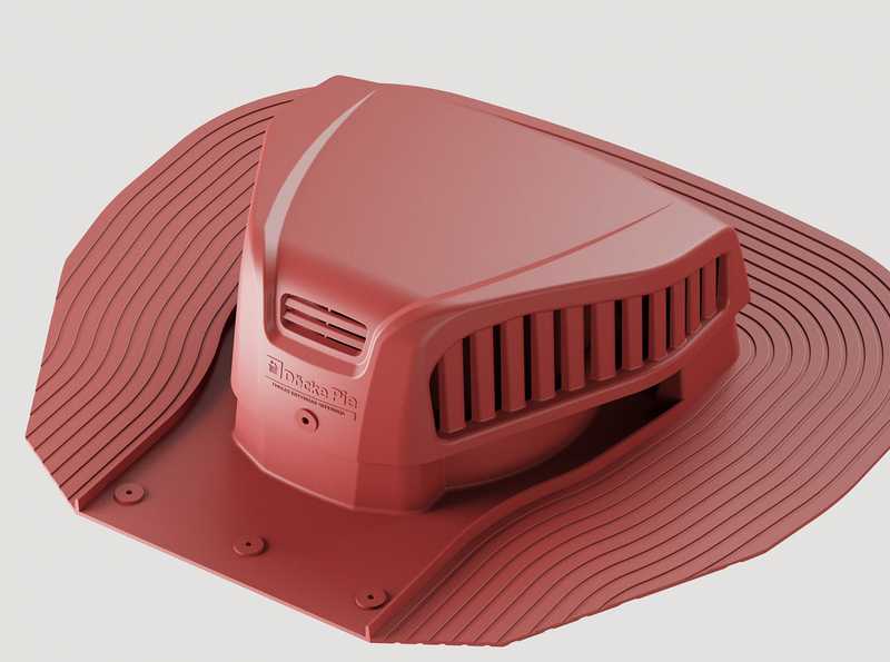 Аэраторы насыщенного красного цвета визуально усилят оттенок красно-коричневой черепицы. Особенно выигрышным будет тандем с черепицей в цвете «клубника» из серии Premium.