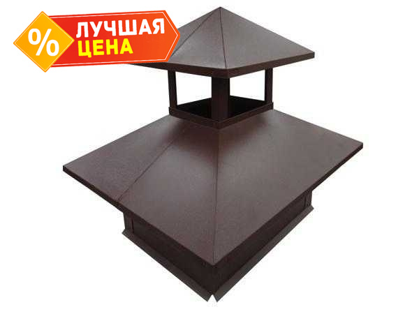 Дымник на трубу двойной 520х390мм 0,5 GreenCoat Pural BT, matt с пленкой RR 32 темно-коричневый (RAL 8019 серо-коричневый)