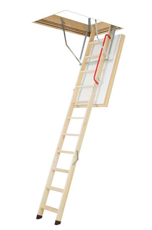 • Складная чердачная лестница позволяет сэкономить свободное пространство в доме. Она легко складывается и убирается для хранения в потолок, не занимает много места.