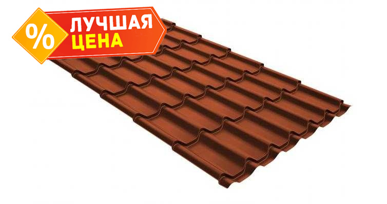 Металлочерепица Grand Line Classic (Классик) 0,5 GreenCoat Pural RR 750 Кирпично-красный