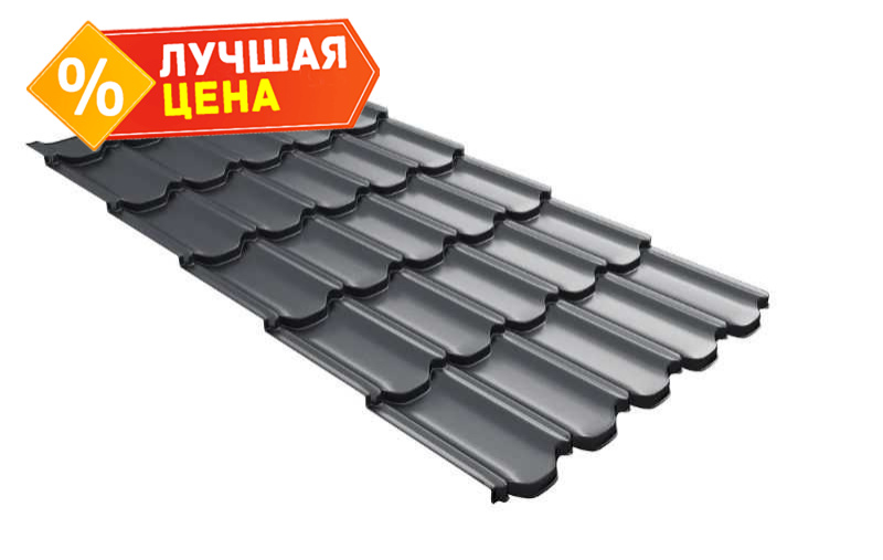 Металлочерепица Grand Line Kvinta plus (Квинта Плюс) 0,5 GreenCoat Pural Matt BT RR 23 Мокрый асфальт | c 3D резом