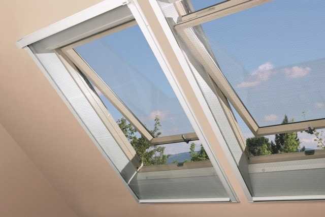 Монтаж сетки производится по откосу окна, ее движение происходит по специальным боковым направляющим. Подобная конструктивная особенность позволяет надежно удерживать москитную сетку на мансардном окне, что исключает ее срыв и повреждение в результате сильных порывов ветра. Москитная сетка не деформируется под воздействием ультрафиолета и высоких температур.