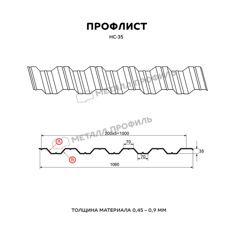 Профлист имеет профиль НС-35, который обеспечивает прочность и устойчивость к нагрузкам.