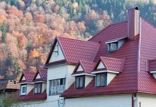 Металлочерепица Ruukki Monterrey Полиэстер может использоваться для монтажа кровли в частных домах, также это хороший выбор для оформления объектов коммерческого назначения, административных зданий. Респектабельный внешний вид коллекции дополняется ее безукоризненными эксплуатационными качествами. Так, благодаря применению стальных оцинкованных 0,5-миллиметровых листов изделия не подвергаются губительному воздействию коррозии, они сохраняют свои свойства даже при условии эксплуатации во влажном климате. На солнце декоративное покрытие смотрится особенно эффектно, причем оно не выцветает в течение длительного времени.
