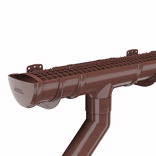 В состав системы входят все необходимые доборные элементы для организации полноценного отведения дождевой и талой воды с крыш и навесов.