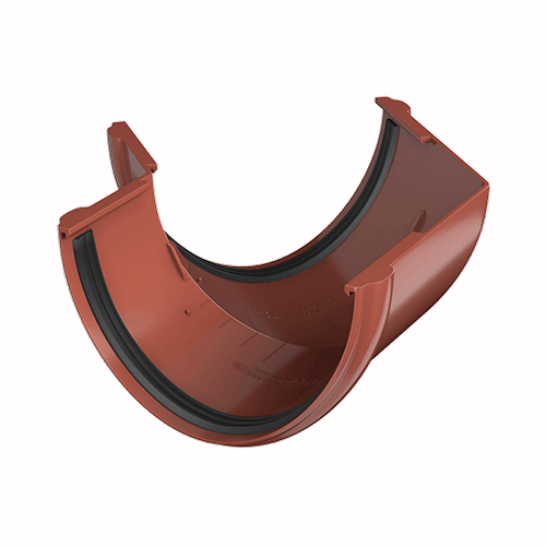 Угол желоба предназначен для соединения желобов на карнизах, которые лежат в одной плоскости, но расположены перпендикулярно относительно друг друга.